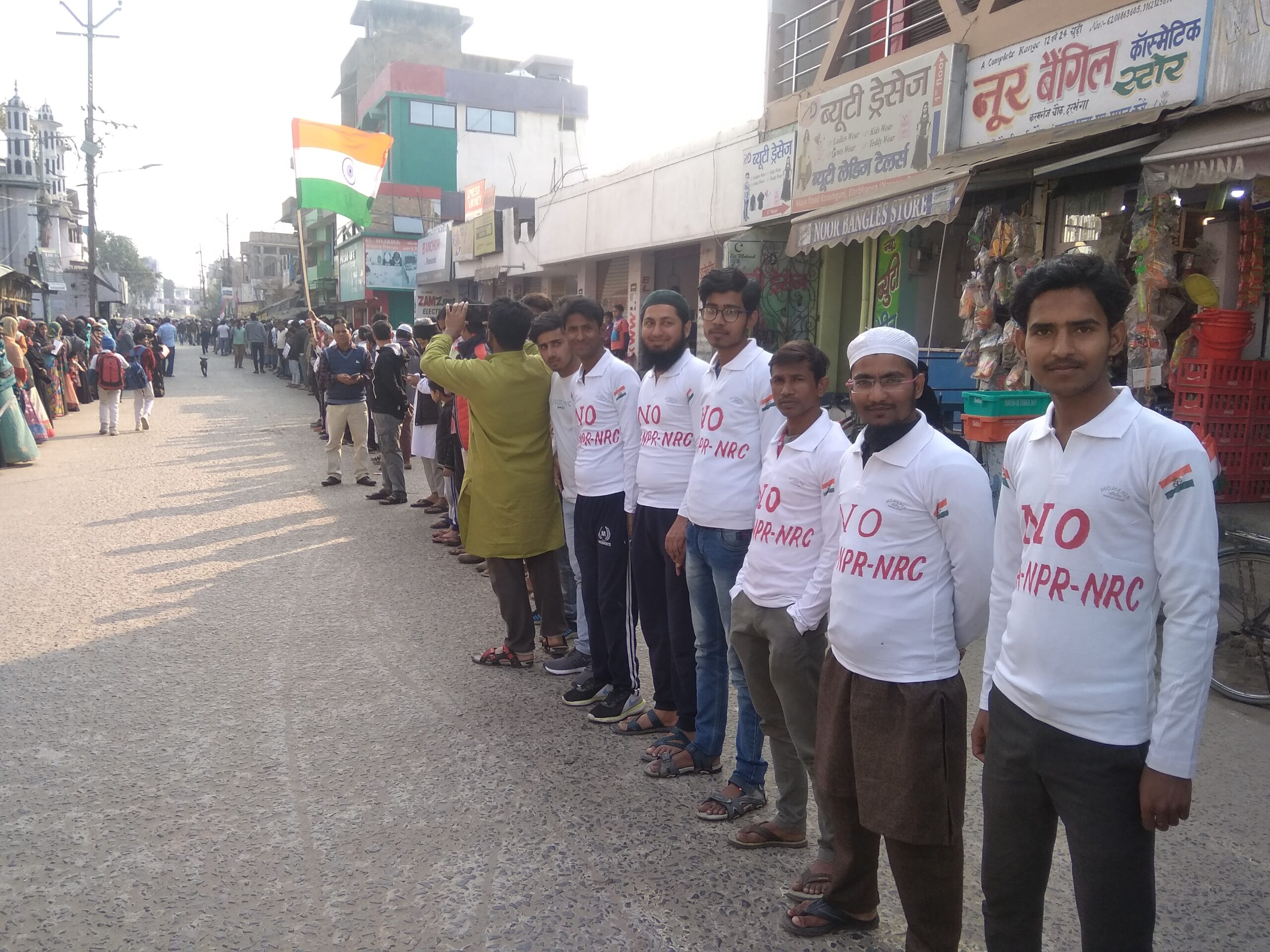दरभंगा में CAA-NRC और NPR के विरोध को लेकर मानव श्रृंखला बनाई गई. इमारत शरिया के आह्वान पर NPR-CAA-NRC के विरोध में पूरे बिहार सूबे में लाखो के तादाद में आकर लोगों ने मानव श्रृंखला बनाकर प्रोटेस्ट में हिस्सा लिया. इसकी शुरुआत किलाघाट के मदरसा हमीदिया के पास जिला मुहर्रम कमेटी में लोगो ने की. ये मानव श्रृंखला करामगंज होते हुए डीएम ऑफिस पर जाकर समाप्त हुई। ज्ञात रहे कि यह प्रोटेस्ट पिछले 7 दिनों से चल रही है ज़िला मोहर्रम कमेटी के पास जिसमें खास तौर कर बड़े पैमाने पर मुस्लिम औरतों शामिल रहती है.