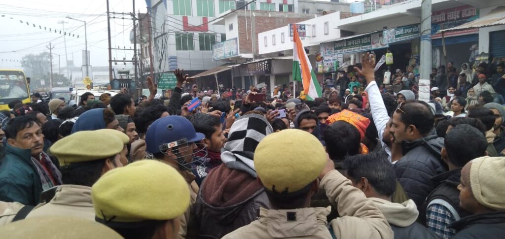 मुज़फ्फरुल इस्लाम:घोसी(मऊ)। स्थानीय नगर में नागरिकता संसोधन अधिनियम के विरुद्ध समाजवादी पार्टी के नेतृत्व में सोमवार को निकलने वाले प्रदर्शन को लेकर स्थानीय प्रशासन के साथ साथ भारी पुलिस बल सुबह से ही हरकत में रहा। सुबह से ही सपा नेताओं व पुलिस अधिकारियों के लुका छुपी का खेल जारी रहा। जहां अपरान्ह 11 बजे मधुबन मोड़ स्थित मदरसा शम्सुल उलूम से सपा नेता व घोसी ब्लाक प्रमुख सुजीत सिंह, निवर्तमान सपा नगर अध्यक्ष खुर्शीद खान, पूर्व नगर अध्यक्ष शोएब निज़ामी, समाजसेवी आकिब सिद्दीकी, रेयाजुल हक मुन्ना सहित दर्जनों लोगों को जुलूस निकालने के पूर्व गिरफ्तार कर लिया गया