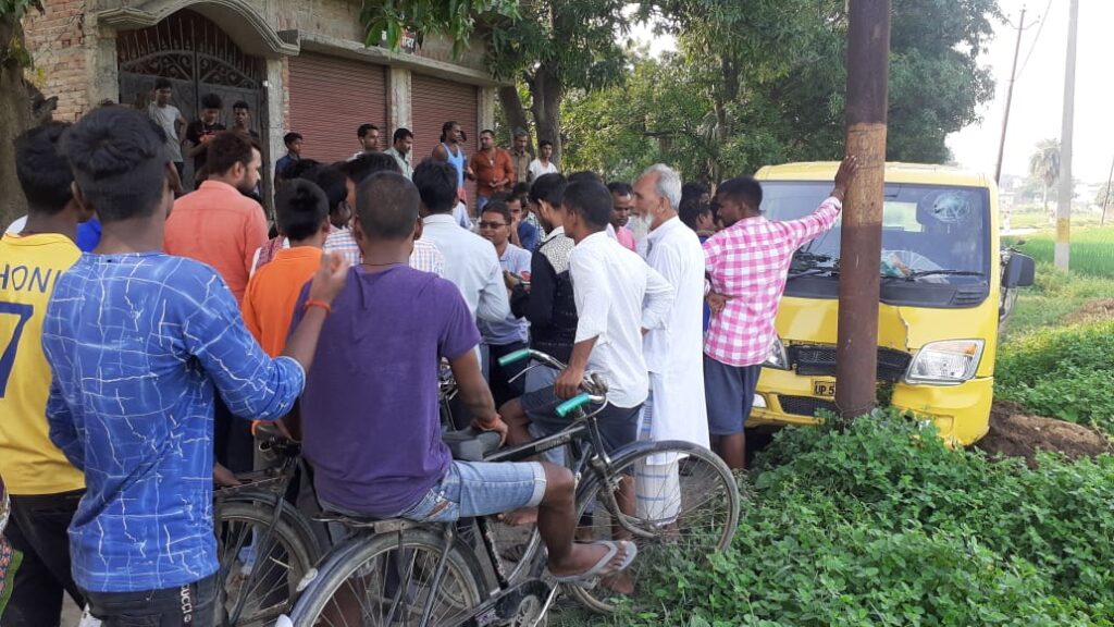 मऊ:बच्चों से भरी स्कूली वैन बिजली के खम्भे से टकराई, बाल-बाल बचे बच्चें