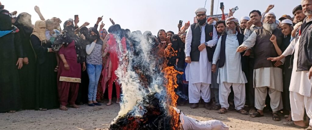 लुधियाना शाहीन बाग में उत्तर प्रदेश के मुख्यमंत्री का पुतला फूंक रोष प्रदर्शन