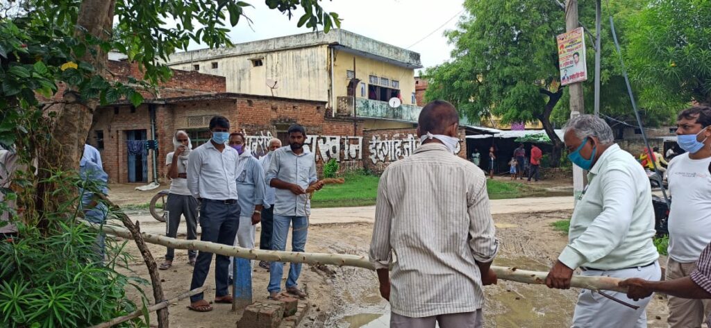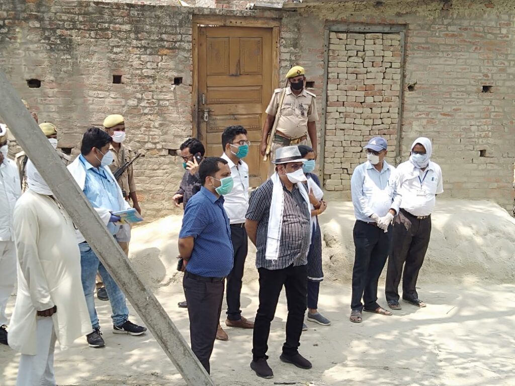 मुज़फ्फरूल इस्लाम,घोसी,मऊ। अमिला के नवकापुरा में शनिवार को माँ बेटे की रिपोर्ट पॉजिटिव आने के बाद उपजिलाधिकारी निरंकार सिंह द्वारा