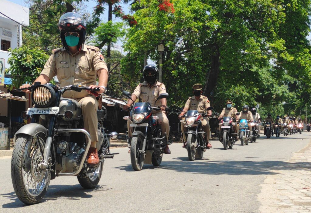 मुज़फ्फरुल इस्लाम,घोसी,मऊ। वैश्विक महामारी कोरोना संक्रमण को देखते हुए सीओ घोसी अभिनव कन्नौजिया के निर्देशन में शनिवार को कोतवाली क्षेत्र