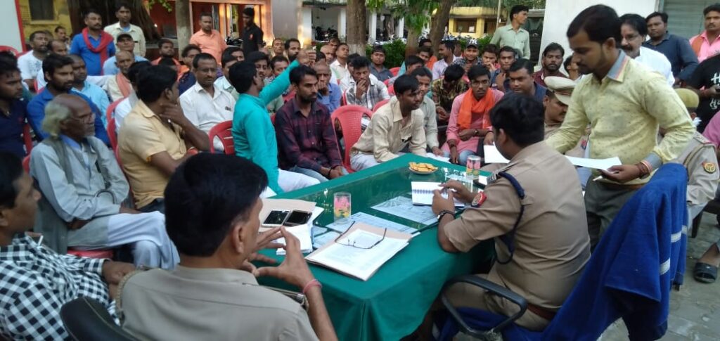 घोसी(मऊ) स्थानीय कोतवाली परिसर में मंगलवार की शाम 5 बजे दुर्गा पूजा एवं मुहर्रम का तीसवाँ को लेकर शान्ति पीस