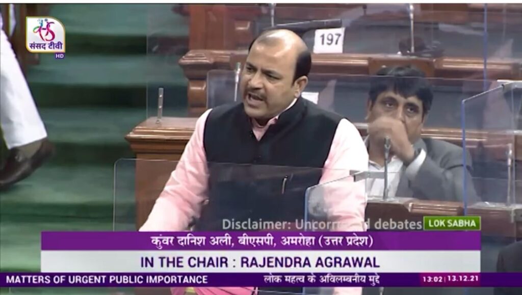 ज़हीर उल हसन की रिपोर्ट नई दिल्ली – आज संसद में अमरोहा से बसपा सांसद कुँवर दानिश अली ने शून्यकाल